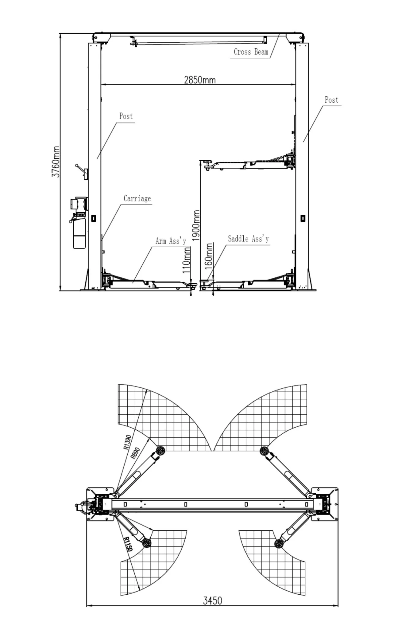 T9000-2OHS-B 4Tons Symmetric Lift